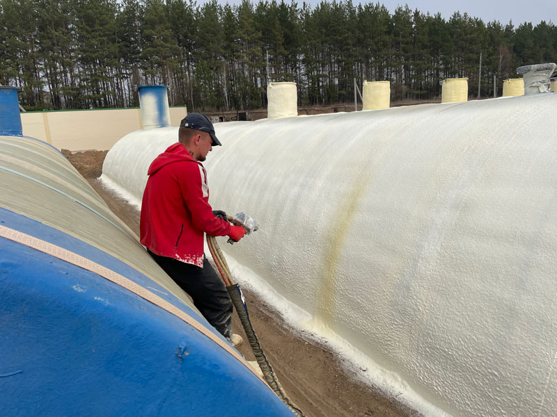 Напыление обеспечивает дополнительную гидроизоляцию.